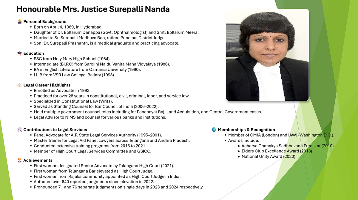 HONOURABLE MRS. JUSTICE SUREPALLI NANDA - Profile