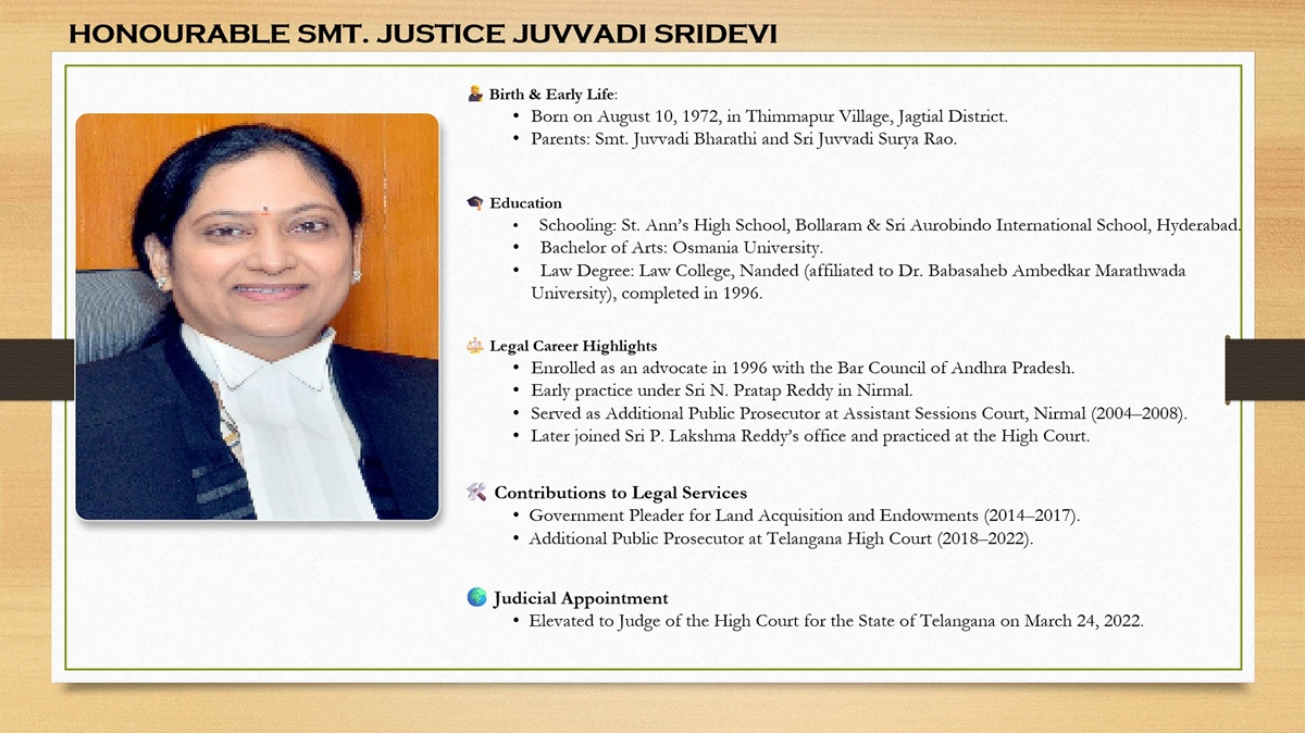 HONOURABLE SMT. JUSTICE JUVVADI SRIDEVI - Profile