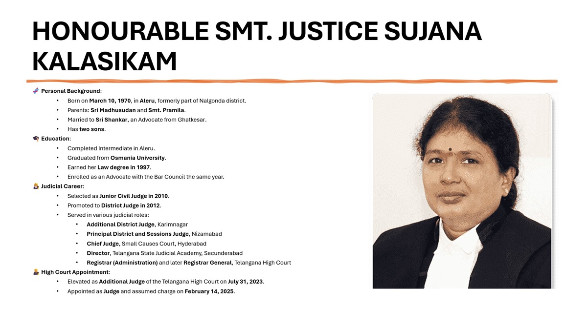 HONOURABLE SMT. JUSTICE SUJANA KALASIKAM Profile