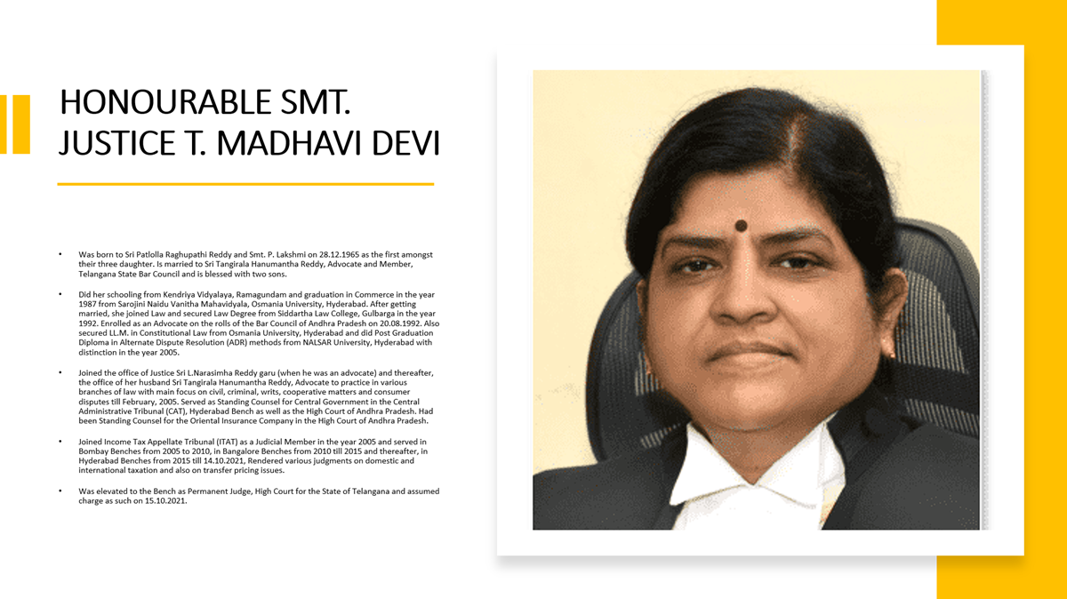 HONOURABLE SMT. JUSTICE T. MADHAVI DEVI - Profile