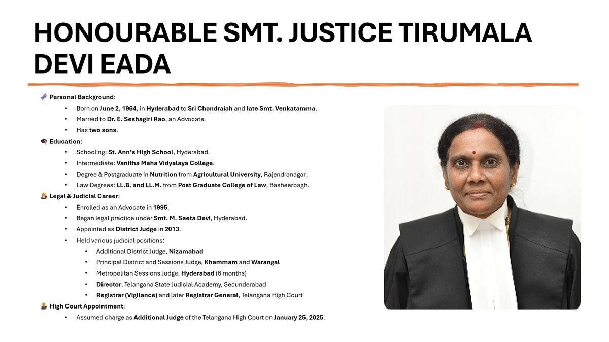 HONOURABLE SMT. JUSTICE TIRUMALA DEVI EADA Profile