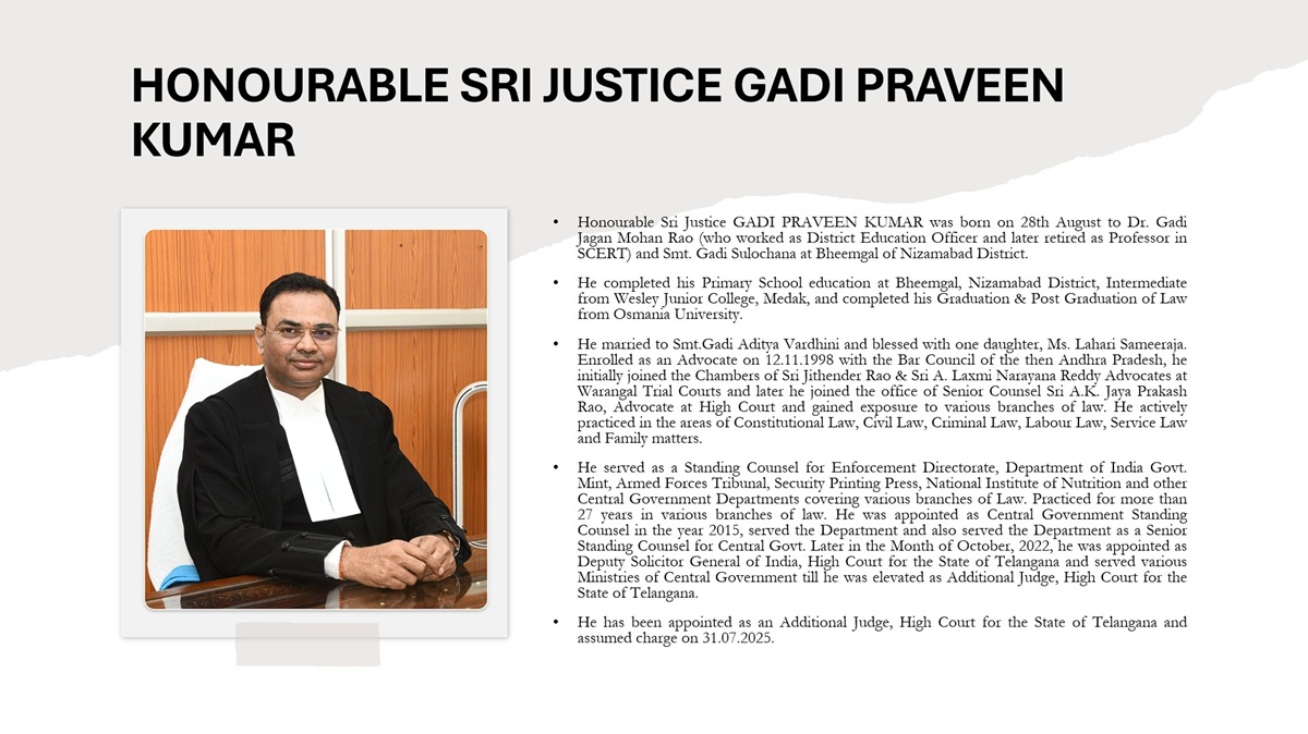 HONOURABLE SRI JUSTICE GADI PRAVEEN KUMAR Profile