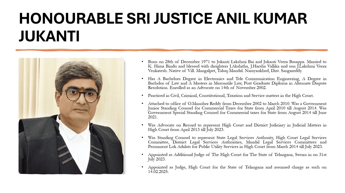 HONOURABLE SRI. JUSTICE ANIL KUMAR JUKANTI Profile