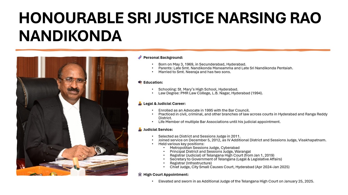 HONOURABLE SRI. JUSTICE NARSING RAO NANDIKONDA Profile